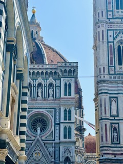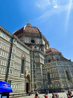 Not only is the Cathedral a religious emblem of the catholic faith, but it also has a remarkable architectural history. The original cathedral was built in 393, but it was remodeled in 1294 due to the ancient building’s physical condition and its capacity was not big enough for Florence’s growing population. The church was not completed until 1461 when the lantern was adorned on top of the world-famous dome. Because the church is so old and was under construction for hundreds of years, different artistic and architectural styles such as Gothic features are visible.