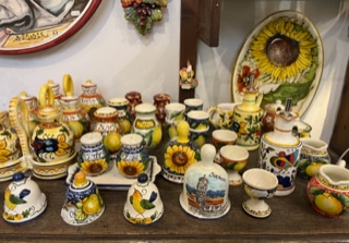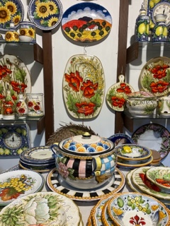 One of the many ceramics shops in Montelupo Fiorentino is La Galleria Montelupo. The shop is a family business. As is the same in many artisan trades, knowledge is passed on through families to carry on the family tradition. Betty Mirenda takes care of La Galleria Montelupo during the day while her son takes visitors on a ceramics experience offered by the store.